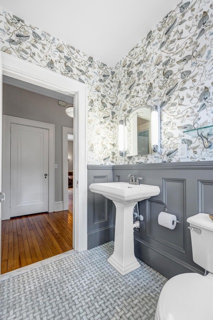 The result is The Heirloom Bath—a warm and elevated space layered with wood wainscoting, traditional wallpaper, and classic old-house charm. What was once outdated is now a beautiful retreat that feels personal, restful, and perfectly suited for this season of life.